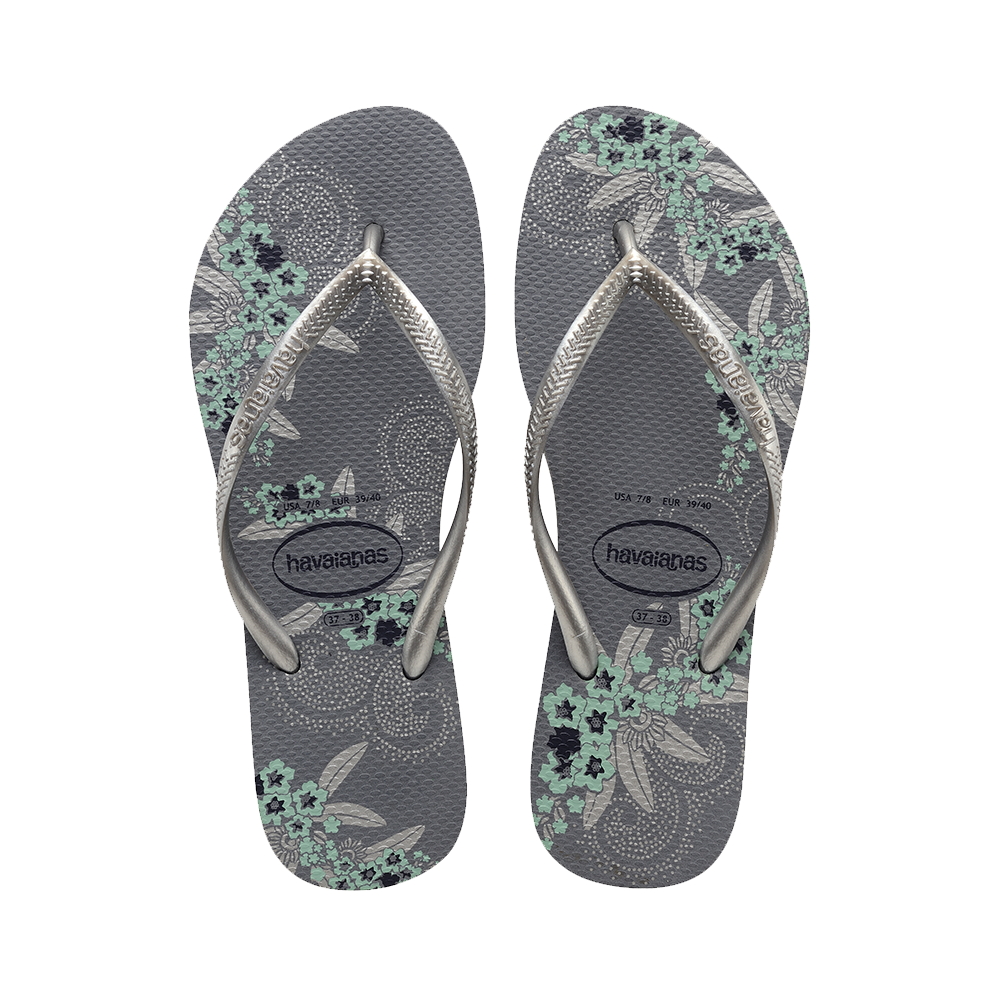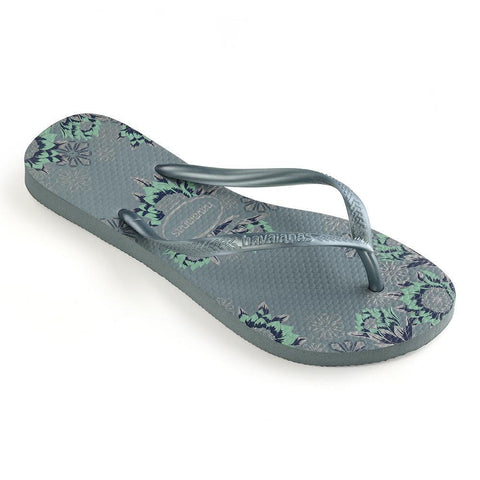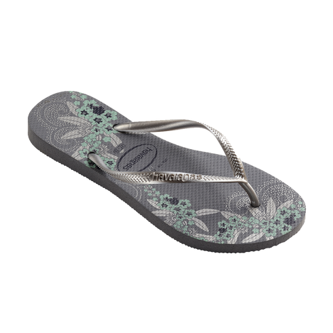 A delicate paisley print unfurls across the sole of the Slim Organic flip flop. In an array of soothing natural colors, the style strikes a balance between oh-so-pretty and wear-everywhere style. A tonal Havaianas logo on slim straps finishes this comfy, easy look.